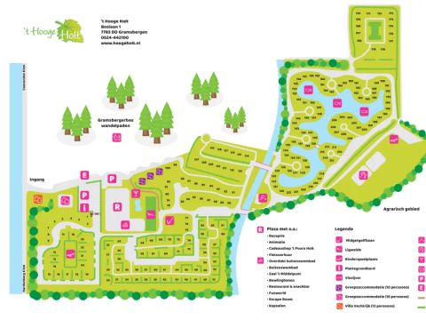 Le 't Hooge Holt propose les hébergements suivants : Chalet, Logement de groupe, Bungalow. Voir les hébergements